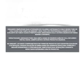 Tubo de Cola Vazio com Tampa - Loja Oficial Embanet Organize e simplifique suas atividades de colagem e artesanato com o nosso Tubo de Cola Vazio com Tampa da Embanet. Ideal para e doméstico, este conjunto de tubos vazios é perfeito para armazenar cola e outros líquidos de forma segura e eficiente. Contém: 5 tubos vazios com tampas. Altura do Frasco: 7.7 cm Altura da Tampa: 3.4 cm Altura Total Fechado : 10.1 cm Largura: 4.5 cm Capacidade: 45g Fabricados em PEAD Polietileno de Alta Densidade , esses tubos são altamente resistentes e duráveis, garantindo que seu conteúdo esteja sempre protegido. O PEAD é conhecido por sua robustez e resistência a impactos, tornando-o perfeito para aplicações repetidas. Conheça Mais Produtos na Loja Oficial EMBANET: A Embanet oferece produtos projetados para atender às suas necessidades mais exigentes, sempre com a qualidade que você merece. Escolha a Qualidade EMBANET Hoje Mesmo Marca: Não Informado