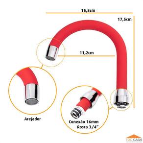 Tubo Bica Móvel Tipo U para Lavatório em Silicone Vermelho e Arejador Fixo
