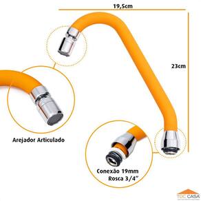 Com design sofisticado e material altamente resistente e durável, nossa linha de Bica Móvel tubo J, possui movimento de 360º, produzida em inox revestida de silicone Laranja e arejador fixo em latão, além de colaborar com a economia de água, confere praticidade e é extremamente funcional para a realização das tarefas diárias, é a peça ideal para sua torneira de cozinha.