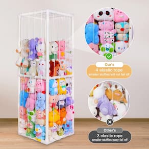 FIOBEE Armazenamento de animais de pelúcia PVC organizador de brinquedos com faixa elástica grande suporte de animais de pelúcia prateleira organizadora de brinquedos para berçário, sala de jogos, quarto, móveis, armazenamento de pelúcia - Grande zoológico de animais de pelúcia: nosso tamanho de suporte de bichos de pelúcia é de 40,6 x 40,6 x 147 cm, design de grande capacidade e economia de espaço, pode fornecer espaço suficiente para armazenar brinquedos infantis; comporta muitos animais de pelúcia, especialmente animais de pelúcia de tamanho médio a grande; chega de tropeçar em brinquedos ou pisar em animais de pelúcia - PVC espesso: o zoológico de animais de pelúcia é feito de material de PVC premium e corda elástica flexível, não é fácil de soltar após a montagem, firme e forte; ideal para berçário, pré-escola, sala de jogos, quarto infantil, grande o suficiente para armazenar muitos animais de pelúcia - Design exclusivo: o organizador de armazenamento de brinquedos é projetado em forma de gaiola que pode fazer uso total do espaço vertical; nosso armazenamento de berçário envolve por corda elástica flexível, não apenas pode aumentar o espaço de armazenamento, evitar que os brinquedos caiam, mas conveniente para as crianças levarem brinquedos; e as crianças podem fazer você mesmo seu armazenamento de animais de pelúcia no zoológico com alfabeto e adesivo - Fácil de instalar: este organizador de armazenamento de brinquedos infantil vem com instruções detalhadas de instalação, instale de acordo com as instruções passo a passo e é fácil de montar para você - Observação: depois que todos os produtos estiverem instalados, use um martelo para prendê-los ainda mais; antes de desmontar o organizador de armazenamento infantil, afrouxe a corda elástica primeiro