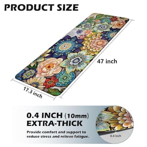 Tapetes de cozinha - ?O pacote inclui? um tapete de cozinha floral retrô boho de PVC para chão, mede 44 x 119 cm, tapete de corrida acolchoado com espuma viscoelástica de 10 mm de espessura. Ter uma borda chanfrada significa que é uma borda redonda. A borda redonda parece mais confortável e pode ser mais adequada para o arranjo geral da família. - ?Tapete acolchoado antifadiga?O tapete de cozinha antifadiga de espuma viscoelástica é ergonomicamente projetado. Se você estiver cozinhando na cozinha ou trabalhando em sua mesa de pé, os tapetes de cozinha acolchoados antifadiga certamente fornecerão amortecimento em seus pés, joelhos, parte inferior das costas e articulações para ficar em pé. - ?Antiderrapante e à prova d'água?Tapete acolchoado de espuma viscoelástica feito de superfície de PVC de alta qualidade e fundo de espuma EVA. O suporte antiderrapante segura o tapete e evita o deslizamento. Sua superfície impermeável oferece à prova d'água e à prova de óleo para o seu chão para garantir uma limpeza fácil. - ?Vários cenários?Nosso longo tapete de cozinha pode ser colocado em uma variedade de superfícies (madeira, cerâmica, laminado, mármore, concreto, etc.). Seguro para usar perto de crianças e animais de estimação, pode ser utilizado em casa, cozinha, em frente à pia, quarto, escritório, lavanderia, banheiro, dentro de casa, capacho e ao ar livre. - ?Fácil de cuidar?O tapete de cozinha floral tubeamin é resistente a manchas, à prova d'água e simples de limpar - basta limpar o óleo ou a água com um pano úmido e um aspirador de mão pode ser utilizado, se necessário. A limpeza é fácil, os tapetes de cozinha para o chão podem economizar seu tempo e energia. - Dicas: o transporte a longo prazo pode causar vincos e um cheiro peculiar no tapete da cozinha. Você pode colocar o tapete antifadiga plano em uma área bem ventilada por algum tempo.