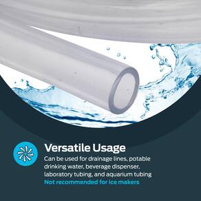 - Versátil: o tubo flexível pode ser utilizado para linhas de drenagem, água potável potável, dispensador de bebidas, tubos de laboratório e tubos de aquário **Não recomendado para máquinas de gelo**