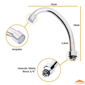 Possui design sofisticado - Bica e arejador fixo produzidos em Inox cromado, materiais de excelente qualidade, além de colaborar com a economia de água, confere praticidade tornando-a ideal para torneira de cozinha.