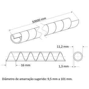 Tubo espiral diâmetro de 1/2" com 50 metros de comprimento. Ideal para organização e acomodação da fiação. Flexível e de fácil manuseio. Orientações . Observações A instalação e segurança: É importante que o produto seja instalado por profissional habilitado. Antes de instalar, desligue a energia elétrica. Características Gerais EAN13 7891435060881 DUN14 17891435060888 NCM 3926.90.90 Peso Líquido 2,0000 kg. Peso Bruto 2,1500 kg. Metragem 0,016900 m³. Dimensões Embalagem (Compr. X Larg. X Alt.) 260x 260x 250 mm. Dimensões Produto (Compr. X Larg. X Alt.) 260x 260x 250 mm.
