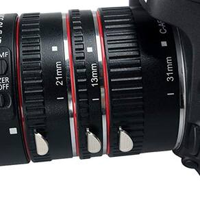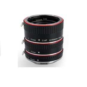 Transforme suas lentes em lentes Macro com esse Tubo Extensor. Quanto mais perto você focar, melhor será o resultado. Ao contrário de filtros close up, o Tubo Extensor não possui componentes ópticos e não afeta a qualidade de suas imagens. O kit inclui 3 tubos extensores, nas medidas de 13, 21 e 31 mm. Projetado para manter auto foco e TTL auto exposição nos equipamentos Canon da família EOS. 3 tubos que podem ser combinados de 7 maneiras diferentes. Fácil de usar. Modo de uso: O Tubo Extensor pode ser usado na câmera da mesma maneira que as lentes macro. Nas câmeras Canon, certifiquese de encaixar as lentes macro apenas depois de o Tubo Extensor estar bem preso à câmera. Do contrário, pode haver danos ao mecanismo do equipamento. Compatibilidade com as lentes: aplicável com vários tipos de lentes, desde as teleobjetivas até as grandesangulares. No entanto, dependendo da combinação usada de lentes + tubo, a distância de foco entre o visor e o objeto pode ficar extremamente próximo. Aplicável com todos os modelos Canon EOS.