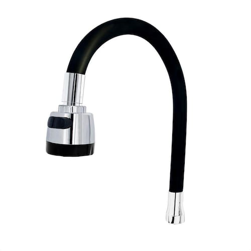 Tubo Flexível de Silicone Preto e Arejador Cromado com crivo Preto com Regulagem Duplo Jato para Torneira de Cozinha Gourmet.