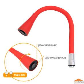 Cor/Acabamento: Bica Silicone Vermelho; Arejador em ABS Cromado; Conexão cromada.