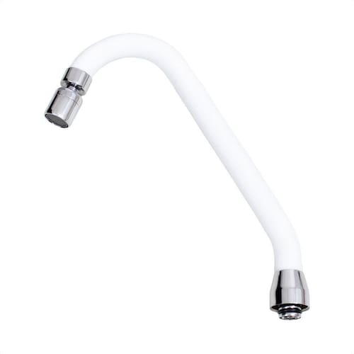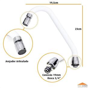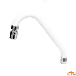 Tubo Bica Cozinha Tipo J Revestido em Silicone Branco com Arejador Articulável em Latão Cromado