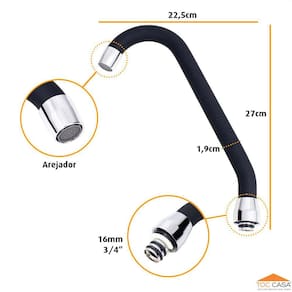 Com design sofisticado e material altamente resistente e durável, nossa linha de Bica Rigida J, possui movimento de 360º, produzida com tubo interno em inox com revestimento de silicone preto e arejador fixo em latão, além de colaborar com a economia de água, confere praticidade e é extremamente funcional para a realização das tarefas diárias, é a peça ideal para sua torneira de cozinha.