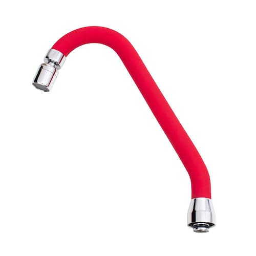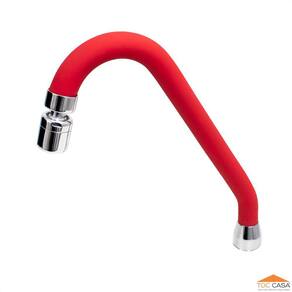 Tubo Bica Cozinha Tipo J Revestido em Silicone Vermelho com Arejador Articulável em Latão Cromado
