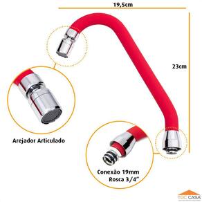 Com design sofisticado e material altamente resistente e durável, nossa linha de Bica Móvel tubo J, possui movimento de 360º, produzida em inox revestida de silicone vermelho e arejador articulável em latão, além de colaborar com a economia de água, confere praticidade e é extremamente funcional para a realização das tarefas diárias, é a peça ideal para sua torneira de cozinha.