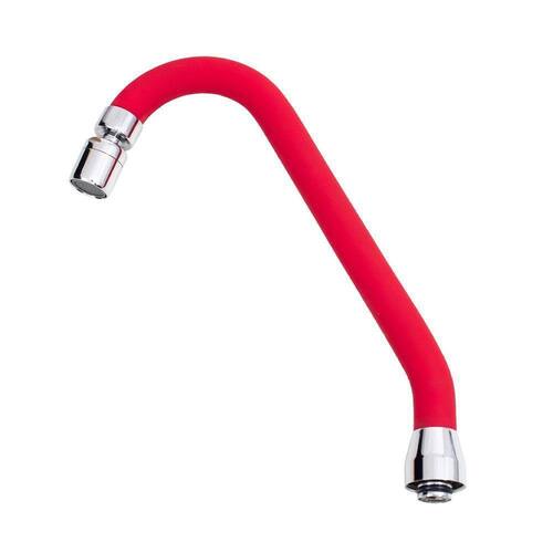 Tubo Bica Cozinha Tipo J Revestido em Silicone Vermelho com Arejador Articulável em Latão Cromado