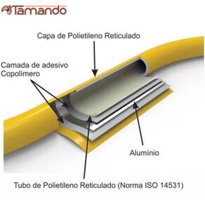 Tubo multicamada pex gas aluminio 16mm x 100mt astra prot uv Tubulação 16mm multicamada para condução de gases combustíveis formado por 5 camadas: pe - adesivo - alumínio - adesivo - pe. Produzido na cor amarela para melhor identificação, pode ser instalado embutido na parede resistente a cal, cimento, etc , maleável, reduzindo o número de conexões e reduz perda de carga. ========== O tubo pex multicamadas astra gás é a escolha ideal para instalações modernas de gás glp ou gn, garantindo segurança, durabilidade e eficiência. Este rolo com 20 metros de tubo amarelo com proteção uv atende às normas internacionais e brasileiras, sendo perfeito para projetos residenciais, comerciais e industriais. ========== Indicada para: Tubulação para transporte de gás glp e gn. Uso residencial. Temperatura e pressão máximas de 60c e 5 bar ========== Características: Resistência ao impacto. Resistência à corrosão química. Material leve: facilidade no transporte e montagem. Instalação limpa e segura por não utilizar materiais como vedantes e soldas. Redução de conexões, por ser maleável. Menos perda de material na obra por ser comercializado em bobinas com marcação metro a metro facilitando o corte. Sistema com proteção uv, possibilitando utilização exposta à luz solar. Diminuição dos casos de roubo por não se tratar de produto com mercado secundário. ========== Informações técnicas: Dilatação linear 2,3 x 10-5 k-1 Condutividade térmica r = 0,004 m2k/w Temperatura máxima de trabalho 60 c Pressão máxima de trabalho 5 bar a 60 c Rugosidade e = 0,007 mm Densidade 1,47 g/cm ========== do vendedor: 90 dias Ean: 7891222218358