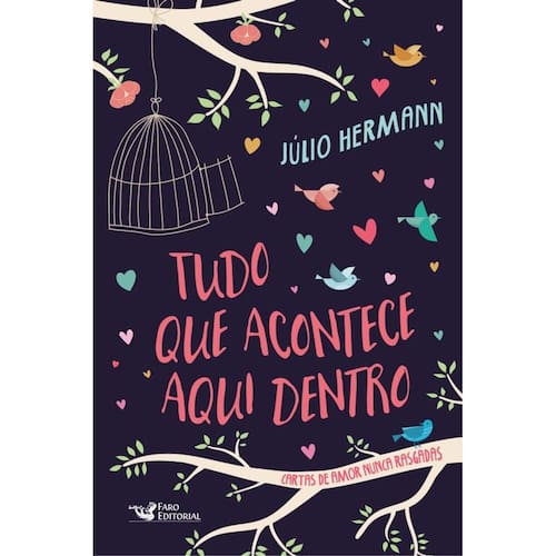 Amar e afogar-se com os próprios sentimentos e continuar respirando Tudo o que acontece aqui dentro é uma seleção de crônicas sobre o amor em seus diversos estágios, sobre aprender com as experiências da vida... trata-se de um tipo de testamento das coisas do coração. É também um romance narrado pelas memórias de quem as viveu, por cartas que deveriam ter sido rasgadas, registros dos sentimentos pessoais de quem revelou bem mais de si que a maioria de todos nós. Uma das coisas mais bonitas é a m aneira com que vamos enfeitando a alma enquanto esperamos alguém chegar "São cartas que escrevi enquanto ainda sentia a ferida arder. Os momentos felizes e os dias em que pensei que não iria aguentar”. Júlio tem um dom. Ele consegue exprimir sobre se ntimentos com muita beleza e, ao compartilhar em escritos, permite que nós também possamos nomear o que muitas vezes sentimos e ficamos de algum modo aflitos, por não compreender. É o momento em que o nosso coração encontra a paz. Ele transforma o gr ito preso nas gargantas em literatura. São linhas que costuram o aprendizado sobre amor com o olhar de uma geração.