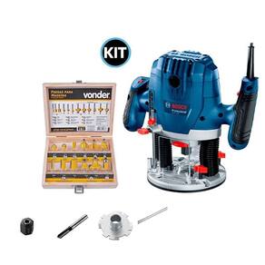 Tupia de Coluna Bosch 1300w GOF130 220V + Jogo de Fresas para Madeira 6mm com 12 Pecas Vonder