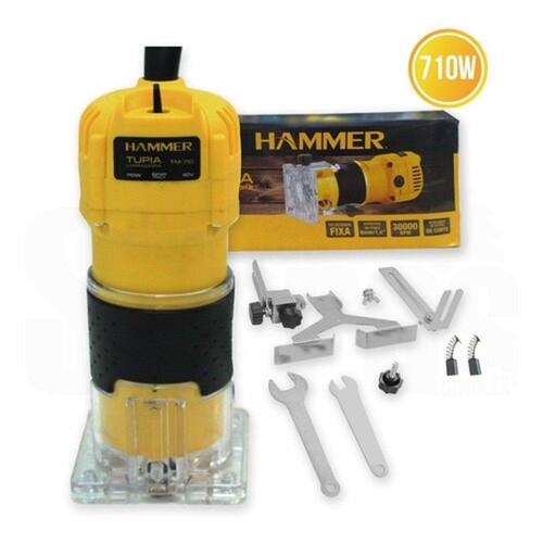 A Tupia Laminadora HAMMER TM-710 foi projetada para cortes e acabamentos em laminados, entalhes, molduras e encaixes em madeiras. - Especificações Técnicas: Tensão: 110V :: Potência: 710W velocidade: 30.000 rpm Diâmetro da pinça: 6 mm Peso: 1,45Kg Acompanha: Chave inglesa 10mm, chave inglesa 17mm, conjunto de guia de corte (3 unidades) -