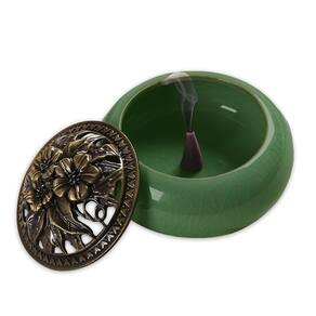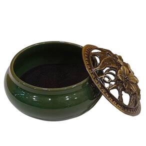 Turíbulo Incensário de Mesa em Cerâmica Verde Escuro 10cm