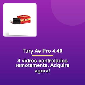 Tury Módulo Vidro Ae Pro4.40 Universal 4 Vidros Com o Módulo De Vidro Tury Ae Pro 4.40 Universal 4 Vidros, você leva a experiência de conforto e praticidade dos vidros elétricos para outro nível. Este módulo revolucionário permite o fechamento e abertura simultânea de todos os 4 vidros do seu veículo através do controle remoto , otimizando seu tempo e proporcionando maior praticidade no dia a dia. Além disso, o módulo transforma todos os botões de vidros em um toque, permitindo o comando de abertura e fechamento com apenas um pressionar, facilitando ainda mais o seu uso. Sua também é prioridade: o Tury Ae Pro 4.40 garante o funcionamento temporizado dos botões da porta do motorista por 1 minuto após desligar o automóvel, e atende aos padrões da Resolução CONTRAN 468/13 e do Código de Trânsito Brasileiro em relação à proteção contra esmagamentos.