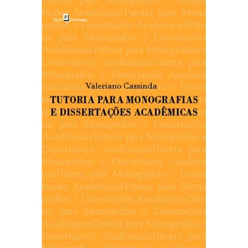 Tutoria para Monografias e Dissertações Acadêmicas, de autoria de Valeriano Cassinda, tem como objetivo principal, busca auxiliar, alunos, professores, tutores e leitores a entender o processo de escrita do tão temido Trabalho de Conclusão de Curso (TCC) e também da monografia, considerando o contexto de pesquisa científica na Angola. Ao longo dos setes capítulos os quais a obra se divide, o ator deseja mostrar qual o real papel de um orientador (tutor) de um TCC e como ele deve auxiliar o aluno em seu cronograma e em sua escrita do trabalho, além do papel do estudante e as informações técnicas de escrita que ele deve dominar.