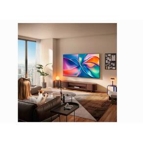 Televisor com tela de 50 polegadas e resolução 4K UHD, oferecendo imagens nítidas e detalhadas. Possui sistema inteligente para acesso a aplicativos, conectividade sem fio, entradas HDMI e USB. Ideal para uso doméstico e entretenimento diário.