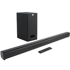 A JBL Cinema SB130 produz 55W RMS de potência e vem com Dolby Digital, dois drivers full-range e subwoofer com fio. Assim, você poderá ouvir música e assistir filmes com som potente e graves profundos. A SB130 suporta Bluetooth para você poder escolher a música remotamente a partir de qualquer smartphone, tablet ou laptop. A conexão HDMI ARC com um único cabo simplifica ainda mais a experiência do usuário.