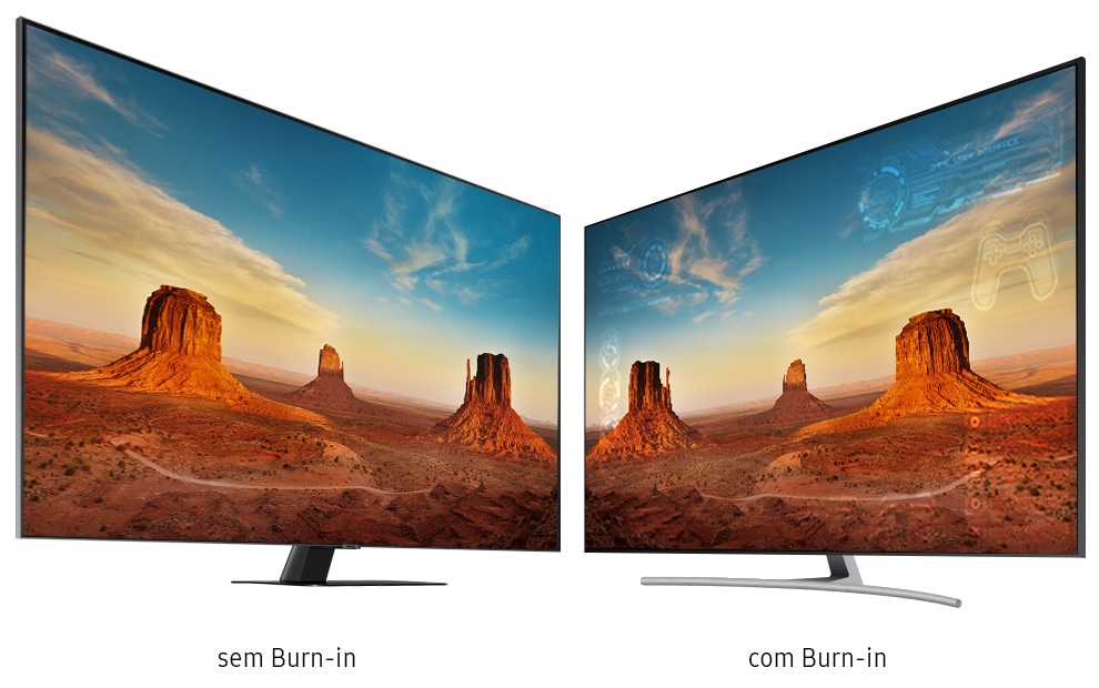 Eventualmente, quando imagens estáticas, como placar ou mapas de jogo, são reproduzidas por muito tempo, algumas TVs as absorvem e mancham a tela para sempre. Com a QLED, você terá a melhor imagem e a garantia de 10 anos contra esse efeito.4