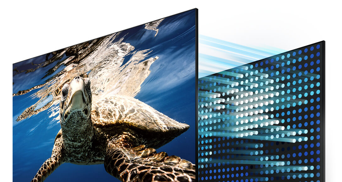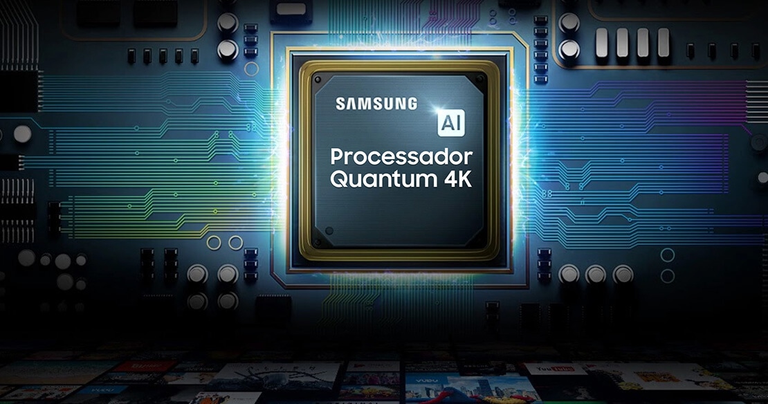 Imagens de menor resolução são automaticamente aprimoradas pela inteligência artificial do processador, e exibidas na QLED com qualidade próxima a resolução 4K.
