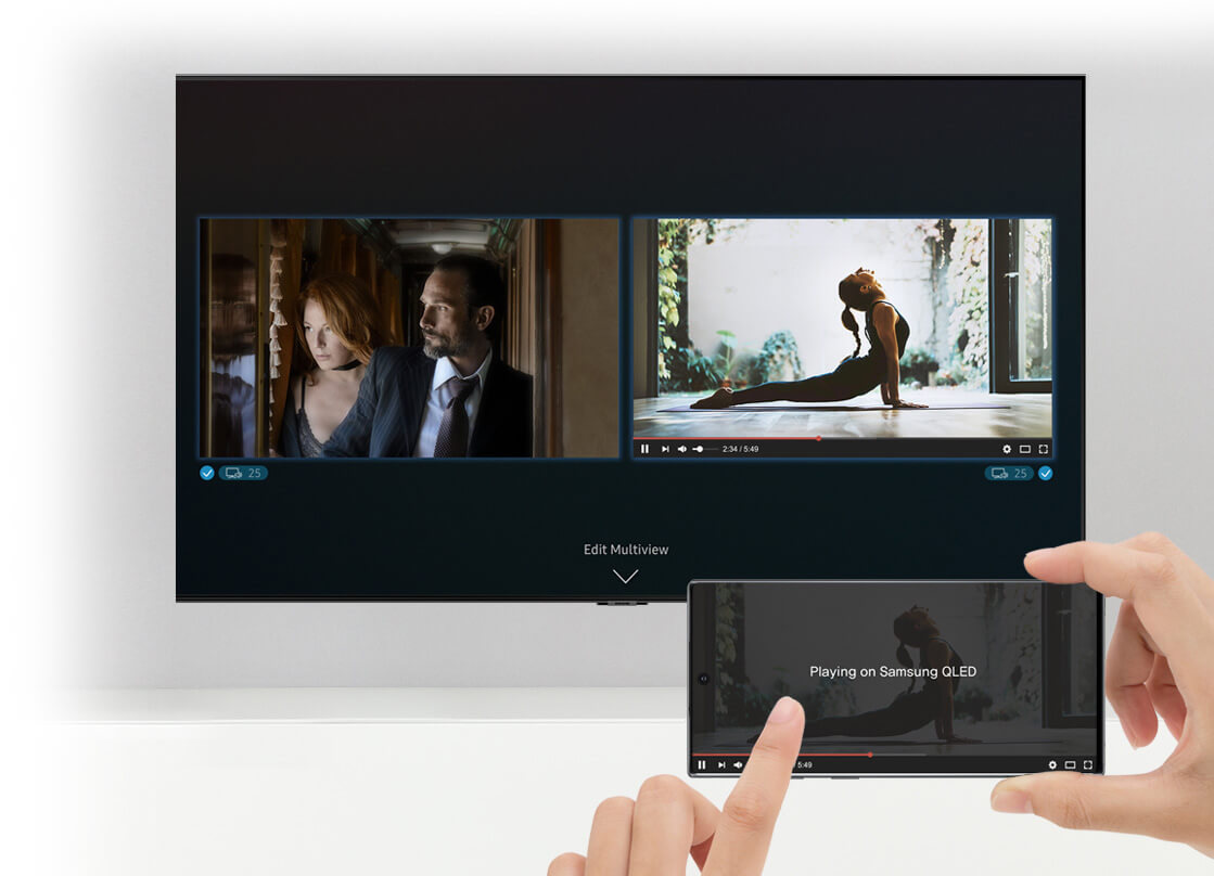 Divida a tela da TV em duas, o conteúdo que você está assistindo de um lado e a tela espelhada do seu smartphone em outro. Acesse vídeos, verifique estatísticas de esportes e muito mais enquanto assiste ao seu programa ou jogo favorito.11