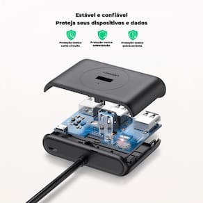 | Além disso, este dispositivo permite que você estenda suas portas USB, facilitando o acesso a elas e protegendo as entradas do seu aparelho.