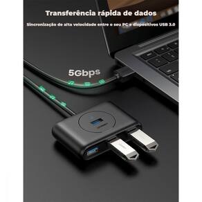 | O HUB USB 3.0 de 4 portas da UGreen permite que você conecte até 4 dispositivos USB ao seu PC/ Macbook/ Laptop de maneira estável e segura.