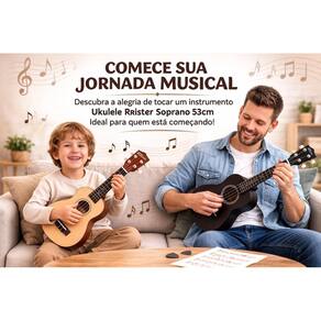 Ukulele acústico soprano capa 3 paletas + afinador A rrister resolveu trazer para o mercado brasileiro seu ukulele pois sabe que o brasileiro é apaixonado por música, e tem paixão pela arte, incentivando novos músicos a despertar seu talento. Nosso ukulele é ideal para iniciar neste universo maravilhoso da música. Construído com alta qualidade e excelência de quem respira a música, o acabamento brilhante de fácil ajuste e adaptação fazem o ukulele rrister a escolha correta. Instrumento feito de madeira e com cravelhas reforçadas, já acompanha cordas, capa protetora e palhetas. Palavras-chave: instrumentos musicais, instrumento, instrumento musical, ukulele soprano, preço ukulele, kulele Especificações técnicas: Marca: rrister Modelo: 01uk - soprano Material do ukulele: mdf Material das cordas: nylon Tamanho: 53cm Itens inclusos: 1 ukulele 1 afinador 1 capa 3 palhetas 4 cordas de 3 meses contra quaisquer defeitos de fabricação e transporte. A não contempla problemas por mau uso do produto.