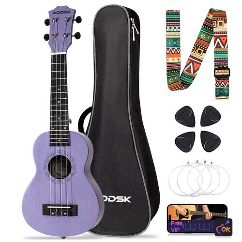 - ?Tecnologia de produção requintada?O ukulele soprano AODSK usa um corpo de madeira sapele suave com um som nítido e agradável. Possui uma escala e ponte de jacarandá lisas polidas. O acabamento do traste usa um processo de moagem e polimento de 9 passagens, e os detalhes premium fornecem jogabilidade confortável e durabilidade