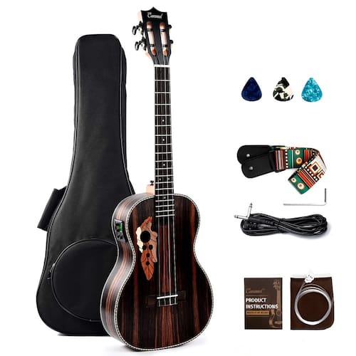 - ? Corpo de madeira de ébano listrado – Os ukeleles barítonos Caramel CB904 de 76,2 cm são feitos de madeira de ébano com belos padrões de grão de madeira são a escolha perfeita para passeios à luz da lua na praia e fogueira, bem como um iniciador de conversa garantido em qualquer configuração de desempenho. Olhando para fora, o pescoço de mogno produz sustentação rica e uma experiência de jogo versátil. para uma ampla variedade de Tamanhos de mão. Os ukuleles Caramel são o instrumento de escolha para profissionais e iniciantes.