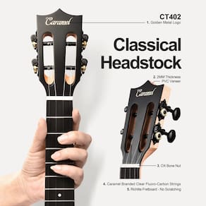 Especificações: Modelo NO: CT402PJ Corpo de mogno Escala e ponte de nogueira maciça. Porca de osso de búfalo e sela 18 trastes Cordas de carbono Caramel Technique Tamanho: Escala tenor 17 26 Comprimento total do corpo Comprimento do corpo 11-3/5. Profundidade do corpo 2-3/4. 1-3/8 na porca Eletrônicos: 3 controles de equalização de banda: baixo, médio, agudos Afinador cromático com visor LCD colorido. Indicador de bateria fraca. Fonte de alimentação: 3V (CR2032) X2 A embalagem inclui: 1 Ukulele Tenor Caramel Mahogany (com afinador) 1 cordão de nylon adicional. 1 bolsa Gig Bag. 3 palhetas de guitarra 1 pano de limpeza. 1 alça de ukulele (com pinos). 1 cabo equalizador. 1 manual do utilizador (sem garantia - Concentre em ukulele de madeira sólida – Os ukeleles tenores Caramel CT402PJ de 66 cm são feitos de toda a madeira sólida de mogno, que oferece ao ukulele melhor sustentação, som mais estável e tom puro, também alcançam melhor ressonância. Os ukuleles Caramel são o instrumento de escolha para profissionais e iniciantes. - Um passo para um tocador de ukulele: você quer aprender a tocar Ukulele? Este kit Ukelele para iniciantes ajuda você a começar! Vem com: 1 Ukelele Tenor de 66 cm, 1 conjunto extra de cordas G-C-E-A, bolsa de apresentação, 3 palhetas de guitarra, 1 pano de limpeza, 1 alça de ukulele (com pinos), 1 x cabo EQ, 1x instruções (sem garantia de versão em português) - UKULELE INCOMPARÁVEL - 3 bandas equalizador integrado sintonizador com visor LCD colorido, não é um problema para um show! Caramel ukalalee soa quase como um ukulele profissional caro. Luthiers sintonizou um por um antes de enviarmos seu ukulele, não se preocupe com jogadores iniciantes ou crianças. Esta é uma escolha que faz você possuir por toda a vida - Alta qualidade – Comece sua jornada de músico com um ukulele de madeira maciça real, pare de comprar brinquedos de plástico! Os ukuleles tenores, o tamanho de 66 cm é melhor do que o concerto, apenas 7,6 cm maior, mas com melhor som e trastes mais amplos que são melhores para adultos, novatos, músicos intermediários ou profissionais que começam a praticar. Este pacote ukele é sua melhor escolha! G-C-E-A sintonizado. - ATENDIMENTO AO CLIENTE PROFISSIONAL - A equipe da Caramel tem anos de experiência no setor e está comprometida em fornecer a você um serviço profissional e atencioso. Sinta-se à vontade para entrar em contato conosco a qualquer momento se encontrar algum problema durante o uso. Junte-se a nós agora e deixe a Caramel acompanhá-lo em sua jornada musical, criando melodias doces juntos.