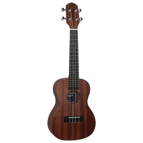 Tipo: Ukulele Concert (tamanho 23) Cor: Natural Satin (NS) Tampo: Sapele Faixa e fundo: Sapele Escala: Tipo rosewood Tarraxas: Blindadas Cromadas (2+2) Braço: Okume Pestana: Plástico (largura 34,5 mm) Trastes: Alpaca (18) Marcação: Bolinhas de abalone (frontal) e brancas (lateral da escala) Acabamento: Verniz fosco (open pore) Captador: Não possui Equalizador: Não possui Controles: Não possui Cordas: Náilon Acessórios: Capa preta (de náilon)