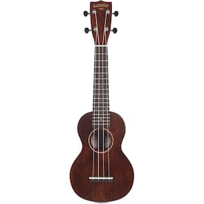 O excelente ukulele da Gretsch Gretsch Guitars traz sua maestria luthier para o mundo dos ukuleles com o ukulele padrão G9100 Soprano. Com tampo laminado em mogno e corpo com escala ovangkol, este uke lindamente projetado oferece excelente tom e sensação. Uma ponte ovangkol e uma porca e selim de osso genuínos fornecem ainda mais ressonância e suporte de tom — características que os entusiastas do uke aqui na Sweetwater realmente apreciam. Acabamento de poros abertos de Tonewoods e Gretsch O tom organicamente quente do ukulele Gretsch G9100 é cortesia de sua parte superior, traseira e laterais de mogno. O pescoço de mogno e a escala ovangkol são uma combinação ideal para otimizar a transferência de energia das cordas para o corpo, para um som profundo e rico. O acabamento semibrilhante natural de poros abertos da Gretsch aprimora o tom do G9100, proporcionando uma aparência discreta. Legado de Gretsch na música americana O ukulele Gretsch G9100 transporta você de volta às raízes de Gretsch na música americana. Todo mundo conhece Gretsch