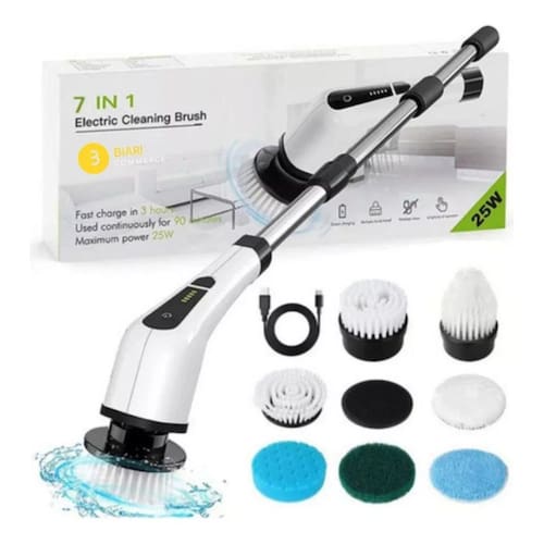 Ultra Esfregão Escova Giratória Elétrica 7 Em 1 Carregável Sem Fio Cor Branco completo