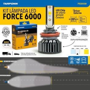 Ultra led force tarponn - modelo h7 6000k 45w ip65 9.000 lumens o par