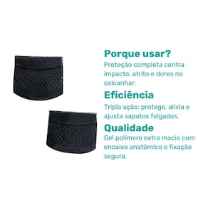 Ele evita atrito, bolhas e machucados na parte traseira do sapato, além de proporcionar ajuste seguro para calçados folgados.