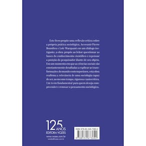 Este livro propõe uma reflexão crítica sobre a própria prática sociológica. Ao reunir Pierre Bourdieu e Loïc Wacquant em um diálogo instigante, a obra propõe ao leitor questionar as bases do conhecimento científico e repensar a posição do pesquisador diante de seu objeto. Em um momento em que as ciências sociais são constantemente desafiadas a explicar as transformações do mundo contemporâneo, esta obra reafirma a relevância de uma sociologia capaz de ser, ao mesmo tempo, rigorosa e autocrítica. Um texto fundamental para quem deseja compreender e renovar o pensamento sociológico.