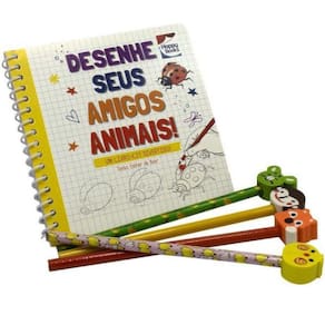 Um livro-kit divertido que encoraja as crianças a realizar os primeiros traços com referência em simpáticos animaizinhos. Basta seguir o fácil passo a passo a partir do aprendizado de linhas e contornos básicos. Arrisque alguns rabiscos e, quando você se der conta, já terá se tornado um grande artista! Acompanha 10 lápis de cor, 10 lápis grafite, 20 borrachas recortadas e coloridas e 1 apontador. Ean: 9786555070583