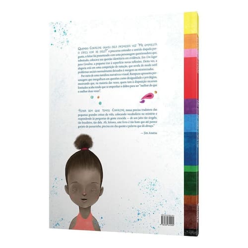 Quando Coraline ouviu pela primeira vez "Me empresta o lápis cor de pele?" e procurou entender o sentido daquela pergunta, o leitor foi presenteado com uma personagem questionadora que, sobretudo, colocava sua questão identitária em evidência. Em Um lugar para Coraline, a pequena traz à superfície novas reflexões. Desta vez, a alegoria está em uma competição de natação, que revela de modo sutil problemas sociais normalmente deixados à margem ou minimizados. Por meio de uma metáfora narrativa e visual, Rampazo apresenta personagens que mergulham em questões como desigualdade e privilégios, mostrando que, na maioria das vezes, quem tem à disposição recursos limitados acaba tendo que se empenhar o dobro para ser "melhor do que o melhor duas vezes". "Ainda bem que temos Coraline, nossa precisa tradutora das pequenas grandes coisas da vida, colocando vocabulário no mistério e respondendo às perguntas de gente crescida — de um jeito tão singelo, tão brasileiro, tão dela. Ah, leitores, este livro é tão bom que até parece gorjeio de passarinho, piscina em dia quente e palavra que dá abraço." — Jim Anotsu