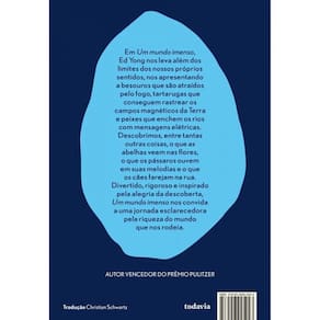Os cães ficam mais felizes se podem farejar livremente. Os golfinhos são capazes de localizar seres humanos, identificando não só a pessoa, mas também seus ossos e órgãos internos, como o pulmão. Os embriões de rã conseguem reagir a possíveis predadores antes mesmo de nascer. Através de exemplos vívidos como esses, conceitos biológicos complexos são transformados por Ed Yong em uma prosa de leitura agradável e acessível, nos guiando pela exploração dos mais variados e curiosos estímulos e seus sentidos correspondentes. Entre tantas outras descobertas, entendemos que esses sentidos existem em número bem superior aos proverbiais cinco sobre os quais se costuma afirmar, de maneira limitada, que bastam para perceber tudo o que há no planeta. Neste livro, Yong desafia perspectivas antropocêntricas e nos apresenta a um universo cativante, onde cada espécie está envolta em sua própria percepção sensorial. O autor também aborda com habilidade o tema controverso dos experimentos com animais para desmistificar ideias pseudocientíficas e incentivar cada vez mais a necessária humildade nas tentativas humanas de compreender a dor — e a delícia — que, para outros seres além de nós, é sentir e viver esse mundo imenso. Ao divergir da abordagem típica dos sentidos dos animais, o autor nos instiga a enxergar como criaturas não humanas, por si sós e de muitas e fascinantes maneiras, experimentam o mundo.