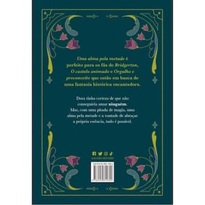 Dora tinha certeza de que não conseguiria amar ninguém . Mas com uma pitada de magia, uma alma pela metade e a vontade de abraçar a própria essência, tudo é possível. Uma alma pela metade é perfeito para fãs de Bridgerton , Castelo animado e Orgulho e preconceito que estão em busca de uma fantasia histórica encantadora. Com capa inédita de Isadora Zeferino. Ainda na infância, Theodora Ettings foi amaldiçoada por um feérico a nunca mais sentir medo ou constrangimento. Por causa disso, ela está sempre na expectativa de, a qualquer momento, se envolver em um grande escândalo. Quando a prima de Dora a convida para ser sua acompanhante na próxima temporada em Londres a fim de encontrar o casamento ideal, o único desejo de Dora é conseguir se comportar como uma dama perfeita segundo a sociedade: contida e discreta. Porém, seu objetivo é ameaçado quando ela conhece Elias Wilder, o grosseiro e estranho mago da corte inglesa, mais conhecido como lorde Feiticeiro. Assim que ele descobre a situação de Dora e promete ajudá-la, ela se vê mergulhada nas perigosas artimanhas e mistérios tanto dos feéricos quanto dos humanos. Se a reputação de Dora sobreviver à maldição e à conexão com o homem mais detestado da alta sociedade, ela poderá se sentir normal no mundo. No entanto, quanto mais tempo Dora passa com Elias, mais ela começa a suspeitar que é possível se apaixonar, mesmo com uma alma pela metade. “Um romance de fantasia histórica perfeito: caloroso, solta fagulhas de magia, cheio de perigos, e maravilhoso.” – Tasha Suri, autora de O trono de jasmim “Inteligente e subversivo, Uma alma pela metade vai aquecer seu coração.” – Shelley Parker-Chen, autora de Ela se tornou o Sol