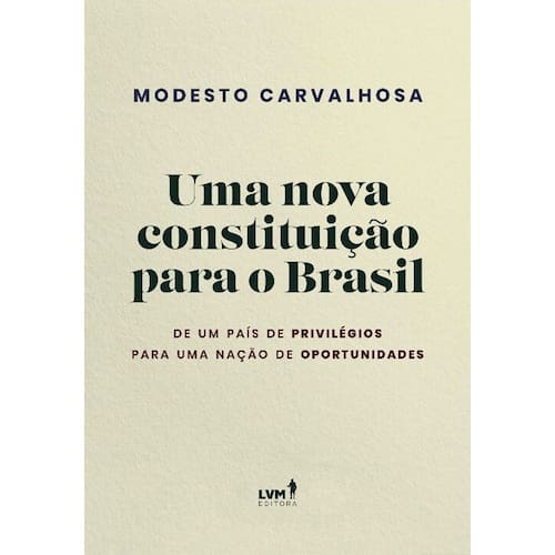 Título do livro : Uma nova constituição para o Brasil Subtítulo do livro : De Um País De Privilégios Para Uma Nação De Oportunidades Autor : Carvalhosa, Modesto Idioma : Português Editora do livro : LVM Editora Ltda Capa do livro : Mole Ano de publicação : 2021 Quantidade de páginas : 480 Altura : 160 mm Largura : 230 mm Peso : 300 g Data de publicação : 15-02-2021 Gênero do livro : Direito