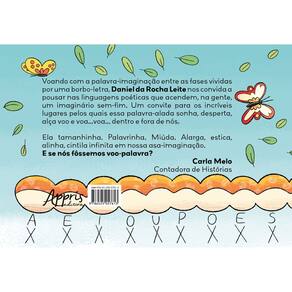 Voando com a palavra-imaginação entre as fases vividas por uma borbo-letra, Daniel da Rocha Leite nos convida a pousar nas linguagens poéticas que acendem, na gente, um imaginário sem-fim. Um convite para os incríveis lugares pelos quais essa palavra-alada sonha, desperta, alça voo e voa…voa… dentro e fora de nós. Ela tamanhinha. Palavrinha. Miúda. Alarga, estica, alinha, cintila infinita em nossa asa-imaginação. E se nós fôssemos voo-palavra?