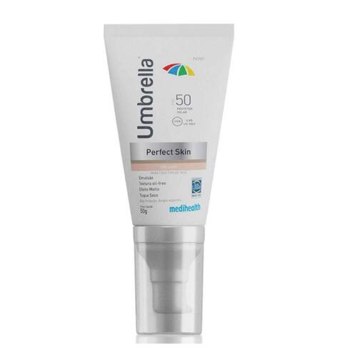 Umbrella Protetor Solar Perfect Skin FPS 50 Tom Claro 50g Oferece um sistema integrado de proteção da pele frente à radiação solar. Potencializando os mecanismos de: Prevenção, Restruturação, Reparação e Fotoproteção.