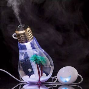 Luminária Lâmpada Difusor Umidificador de Ar charmoso umidificador de ar em formato de lâmpada e decoração de praia. Acompanha kit com pedras e mini coqueiros para decoração interna da luminária. Materiais de alta qualidade e durabilidade Fácil instalação e troca de refil Funcionamento via cabo USB Luminária com luz de led 7 cores Informações importantes: Recomendando o uso apenas de água. Não use essências, vinagre, perfume etc Não utilizar a função umidificador se o tanque estiver vazio Tempo de funcionamento: 6 horas Dimensões aproximadas Altura: 15,3 cm Diâmetro: 8,8 cm Peso: 100 g Comprimento do cabo USB: 120 cm Capacidade: 400 ml Material: Plástico PP Plástico ABS PET Voltagem: DC 5 V - 110 V -240 V Potência: 2W Itens inclusos: 1 Umidificador de ar 1 Kit decoração praia 1 Esponja para reposição Ean: 7891759857242