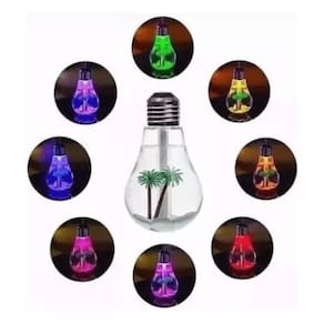 Umidificador de ar em formato de lâmpada, com luz de led disponível em 7 cores, você pode deixar as cores trocando automaticamente, possui reservatório com capacidade para 400ml de água.