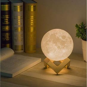 Umidificador/difusor Lua 3D ESPECIFICAÇÕES- COR: a base simula madeira clara, conforme figura. A parte superior branca.- DIMENSÕES: 13 cm x 13 cm conforme figura - POTÊNCIA: 7 watts- CAPACIDADE de umidificação: 25 ml por hora- AUTONOMIA: Demora entre 7 a 8 horas para acabar a água no reservatório de 200 ml FUNÇÕES: Possui dois botões: 1 de iluminação LIGHT , 2 outro que faz ele soltar a umidade névoa de vapor MIST COMO USAR: basta colocar água, gotejar a essência 20 gotas geralmente , ligá-lo à tomada, apertar o botão e curtir a fragrância de seu óleo essencial favorito.